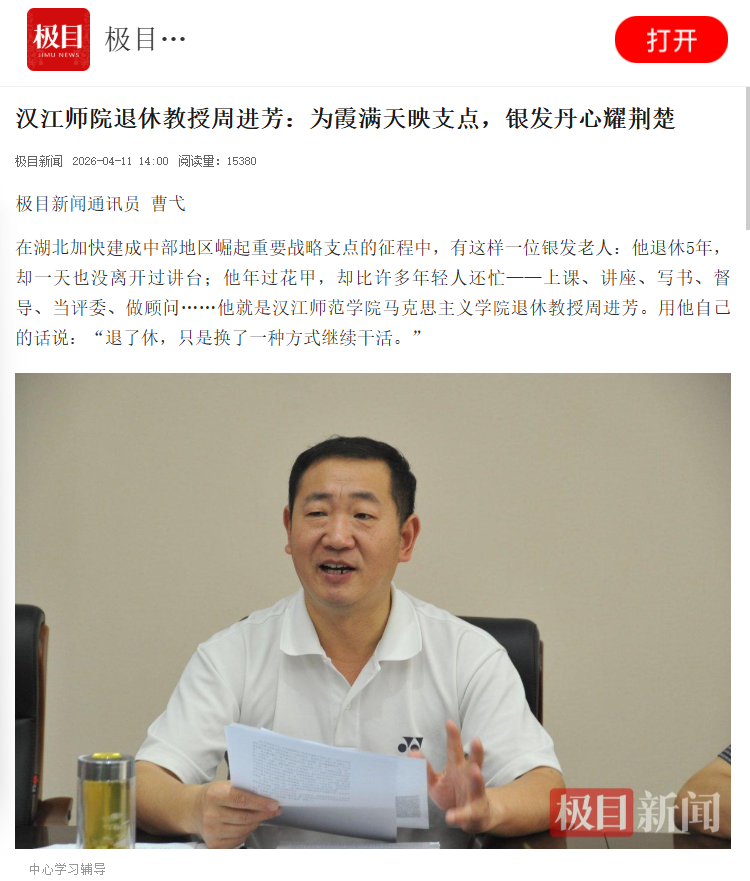 更多+- 退休教授周进芳事迹被省级媒体报道2026-04-12